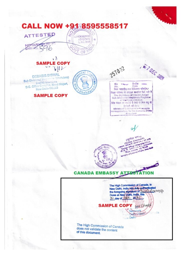 - Finally, the document will be attested or legalized by the Canada Embassy or Consulate in New Delhi, India