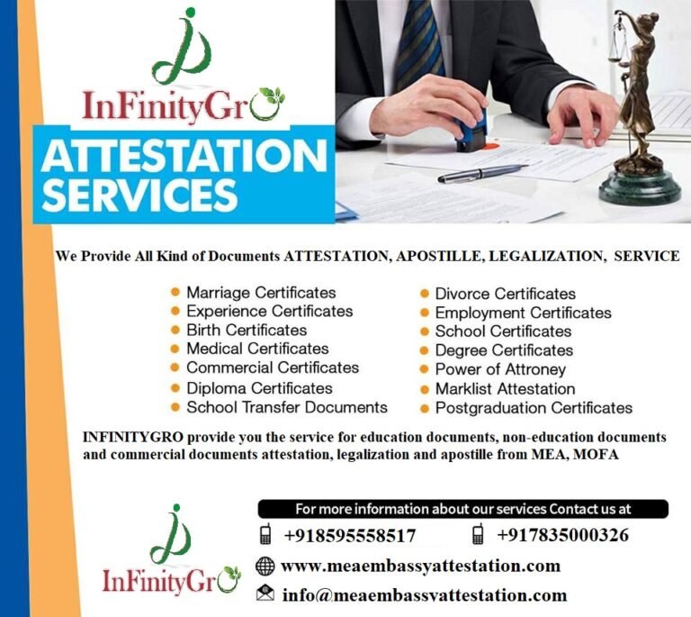 INFINITYGRO provides services the Indore Issued PCC/Police Clearance Certificate could be attested or legalized by any Embassy or Consulate of the destination Country present in India after the Attestation or Apostille from the Ministry of External Affairs – MEA / MOFA – Ministry of Foreign Affairs in India.